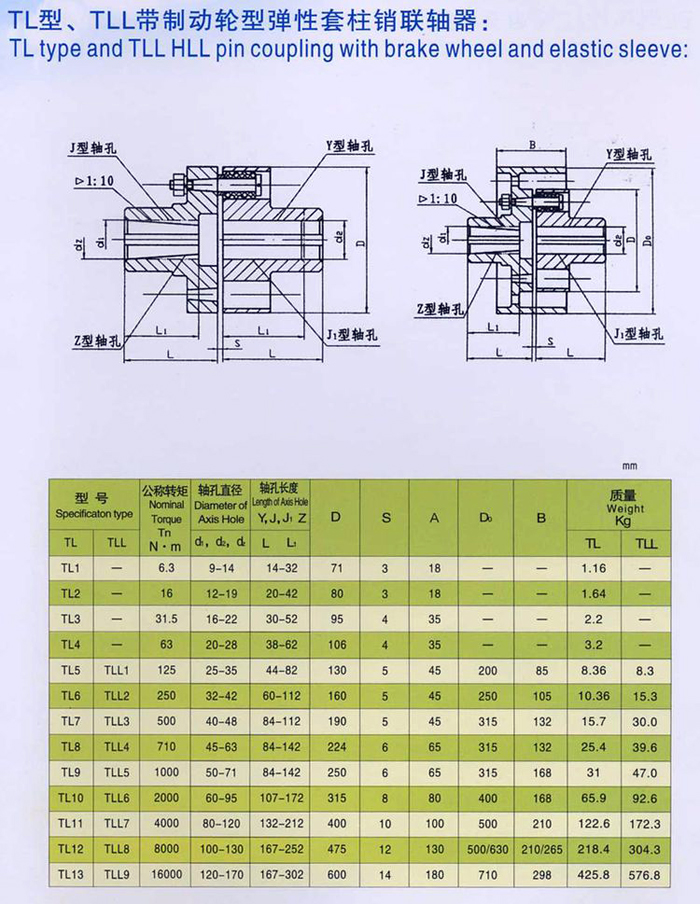TL型、TLL帶制動(dòng)輪型彈性套柱銷(xiāo)聯(lián)軸器系列