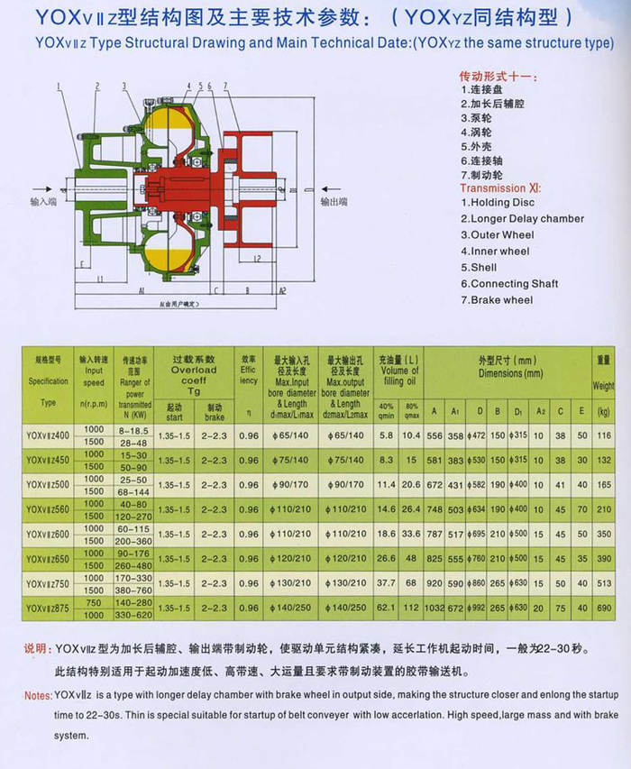 YOXVⅡZ型結構圖及主要技術參數(shù):(YOXYZ同結構型)系列